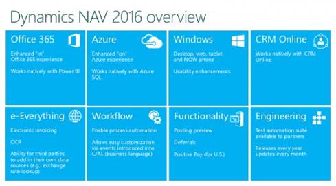 Microsoft Dynamics NAV 2016 est la version de l’ERP international de Microsoft. Destinée aux PME/PMI et filiales de grands groupes, elle apporte un grand nombre de nouvelles fonctionnalités permettant à NAV d’être plus que jamais mobile et convivial.