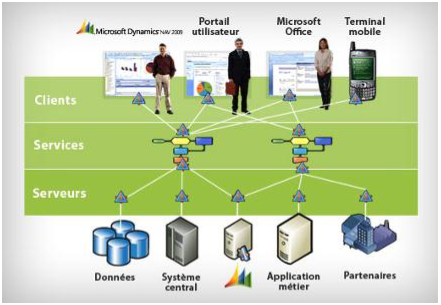 Construit sur une architecture 3 tiers et les technologies .Net de Microsoft, Microsoft Dynamics NAV 2009 (NAVISION) utilise les services web et les standards XML. Plus flexible, il offre de nouvelles possibilités applicatives et de développement, tant sur le plan de la communication avec d’autres partenaires, l’ouverture vers des applications tierces et l’appel à des services externes à l’entreprise.